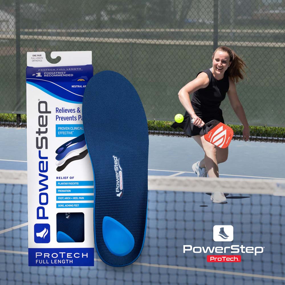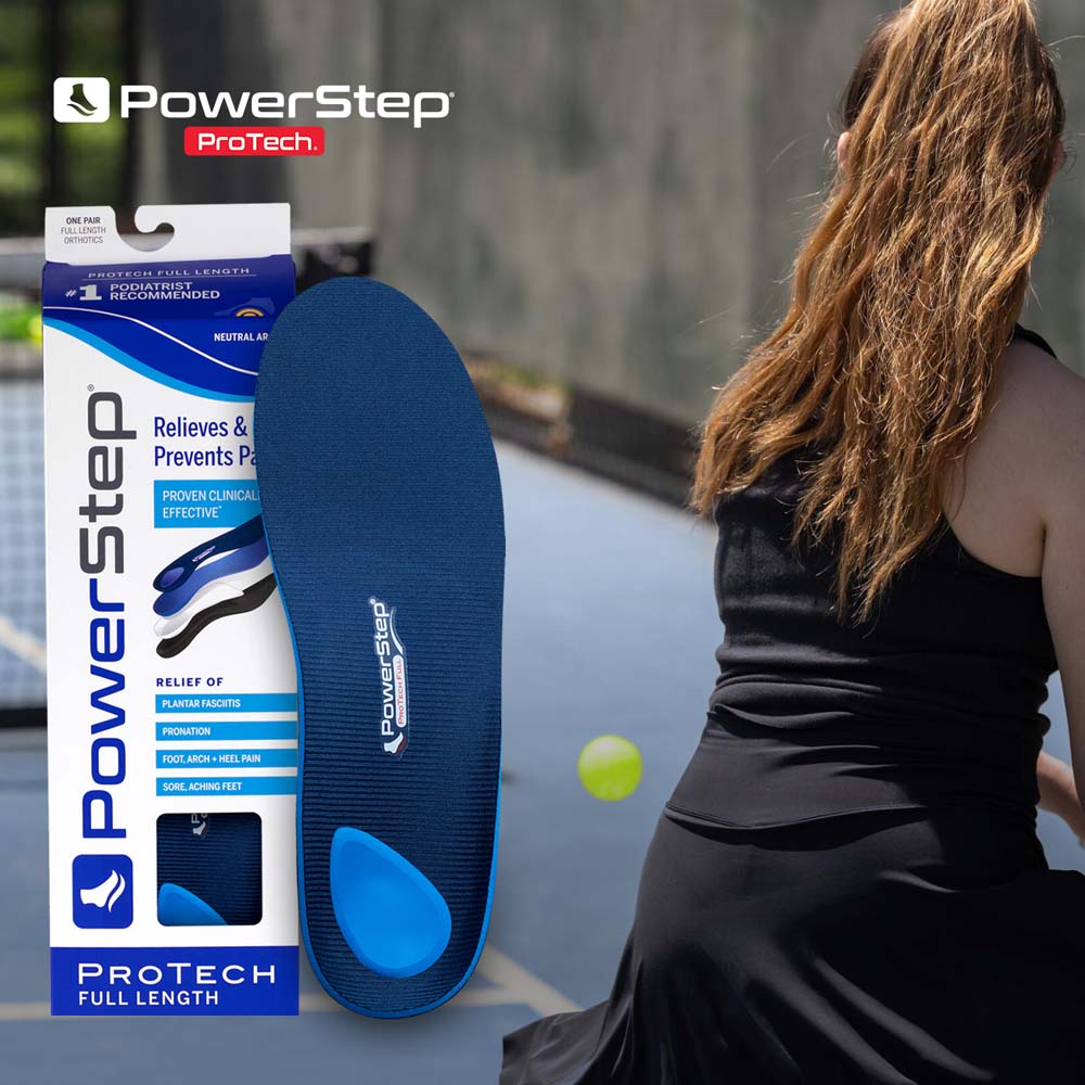 PowerStep ProTech orthotics stabilize the rearfoot and support the medial arch, which prevents excessive inward rolling during walking or standing. The design includes a deep heel cradle that keeps the calcaneus aligned and a dual-layer cushioning system that absorbs impact without collapsing under body weight. These orthotics are sold exclusively through medical offices and are clinically tested for conditions such as plantar fasciitis, Achilles tendinitis, and general foot fatigue.